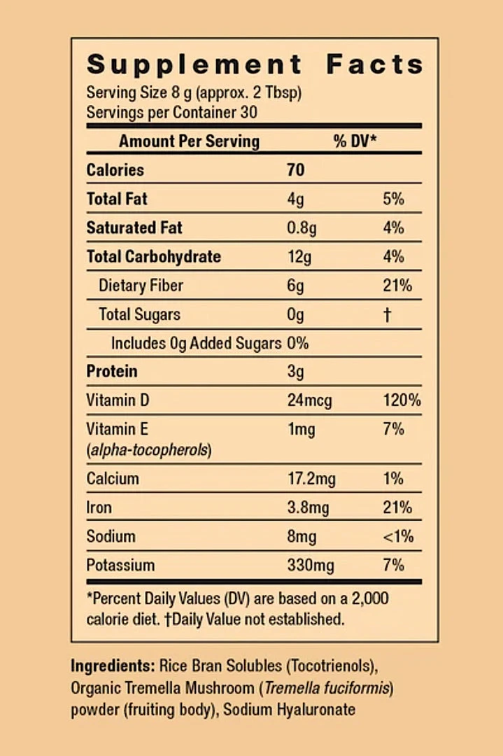 Rice Bran Solubles (Tocotrienols), Tremella Fuciformis Sporocarp (Silver Ear Mushroom), Sodium Hyaluronate – Salt of Hyaluronic Acid