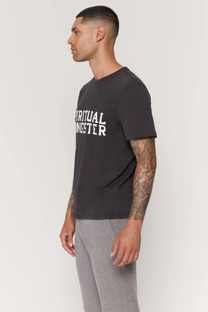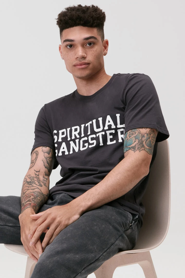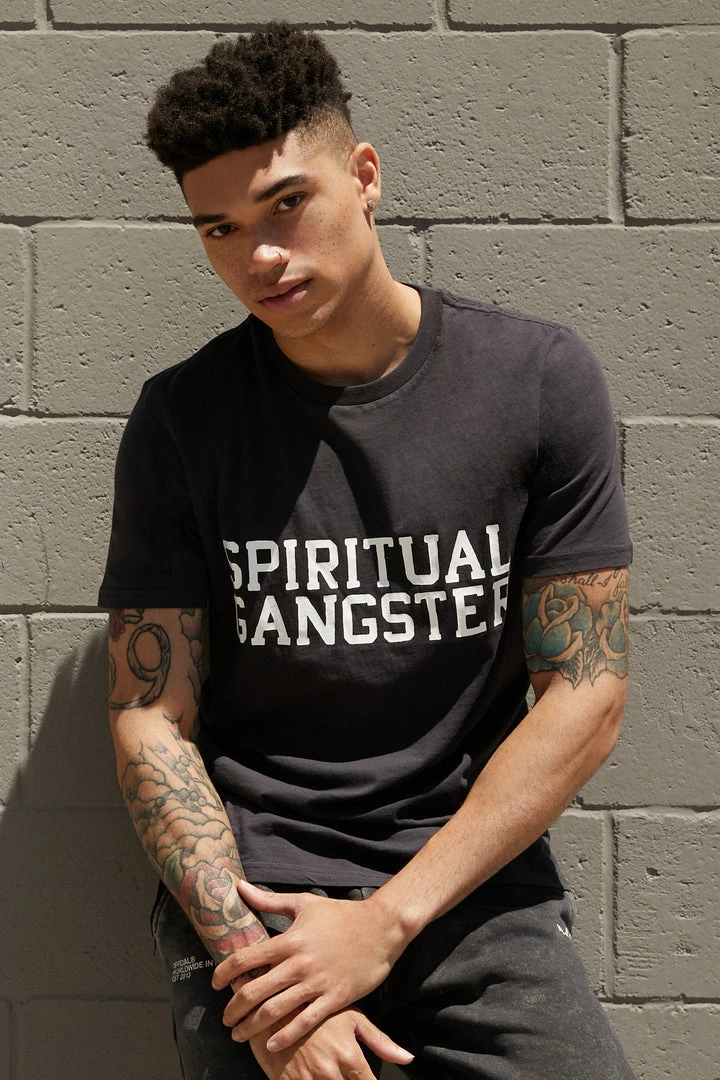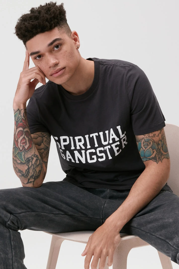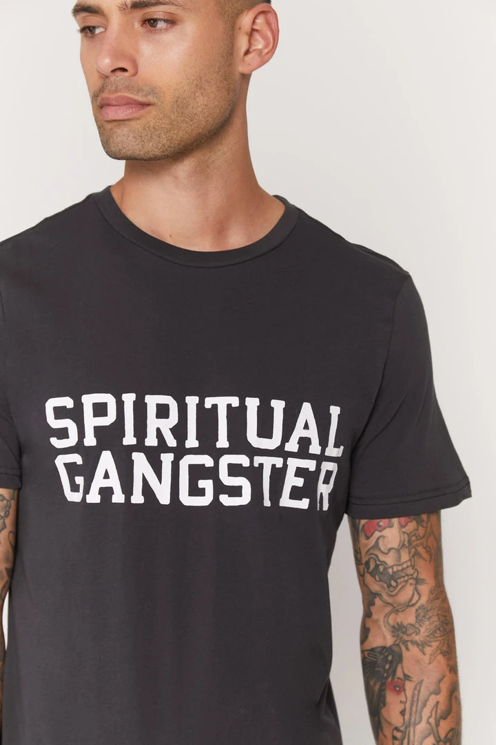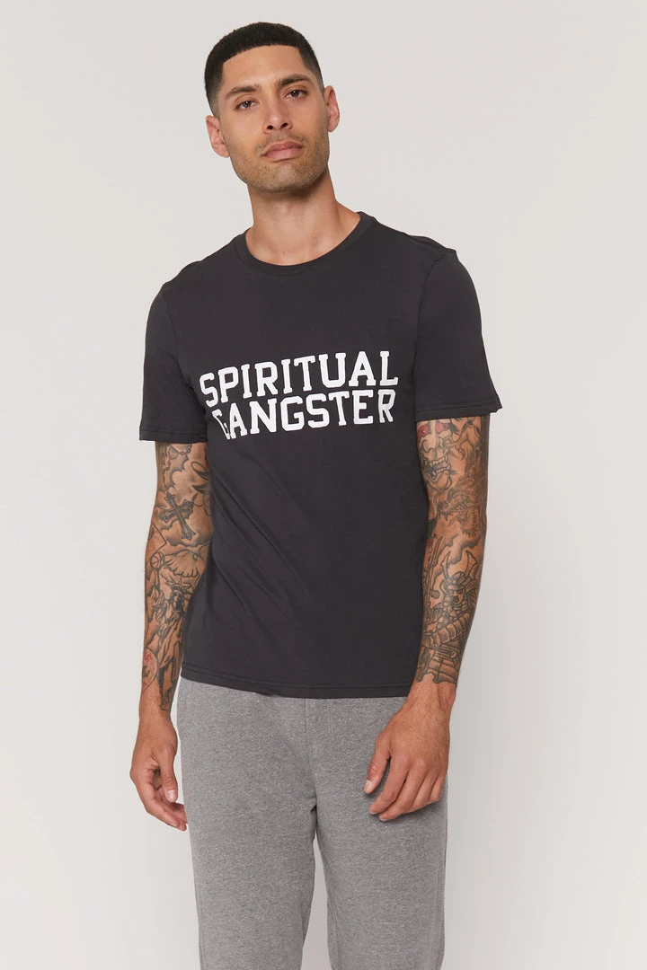 Keep it classic. The Spiritual Gangster Varsity Crew Tee features our vintage inspired logo in white. Perfect with your favorite sweats or denim.