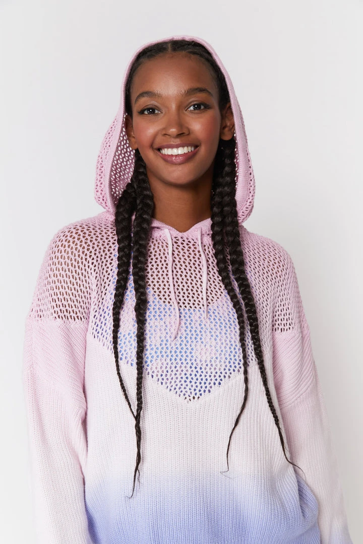 Where cozy and cool mesh together, meet our new Amar Meshed Up Hoodie, featuring a pretty pastel ombré dye effect. Mixing mesh and rib stitches on front and back, in a soft cotton blend sweater knit it’ll be your new favorite layer for the season.
