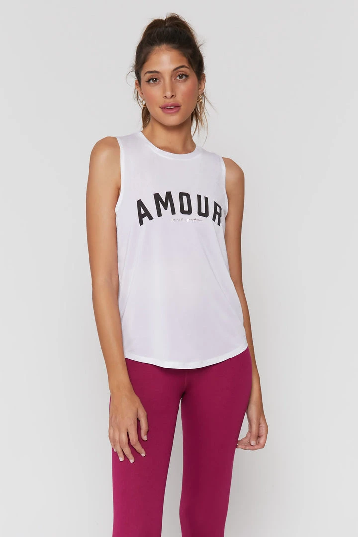 Move with amour in the Active Muscle Tank with metallic touches, adding a little shine to your practice.