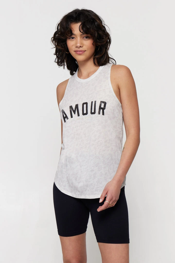 Designed with yogis in mind, the Movement Tank in soft tri-blend jersey is a perfect layering piece to effortlessly throw-on-and-flow. Updated this season with a subtle snow leopard print and hints of shimmer.