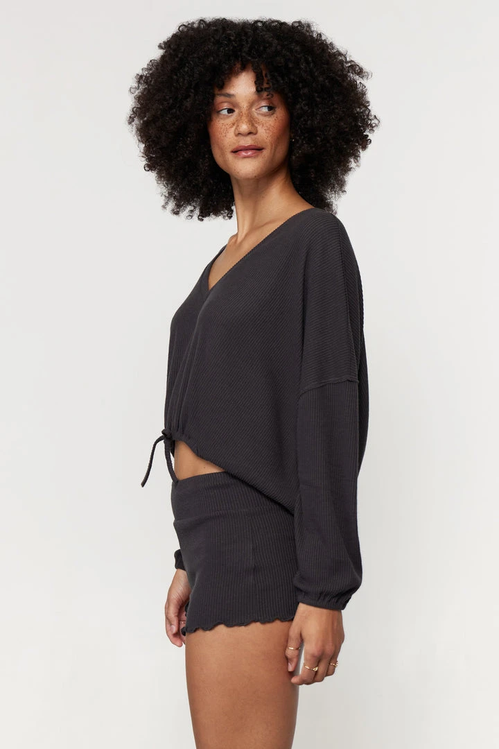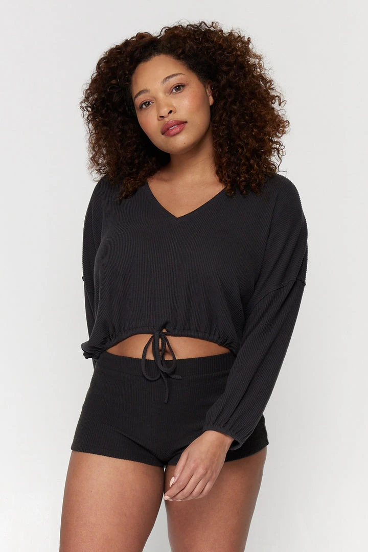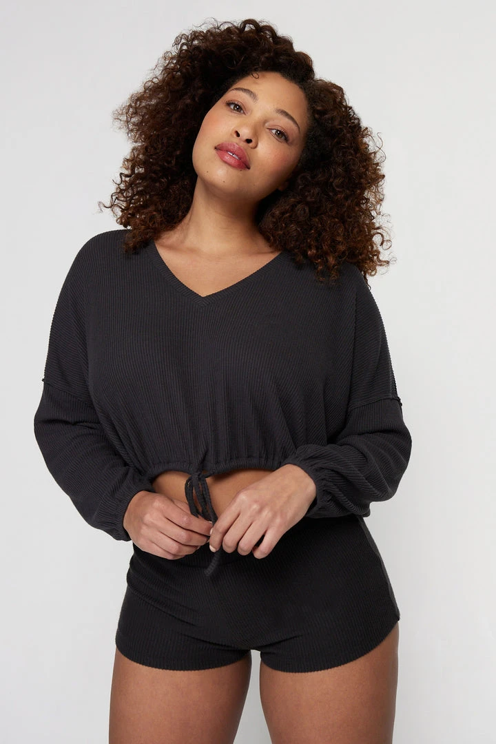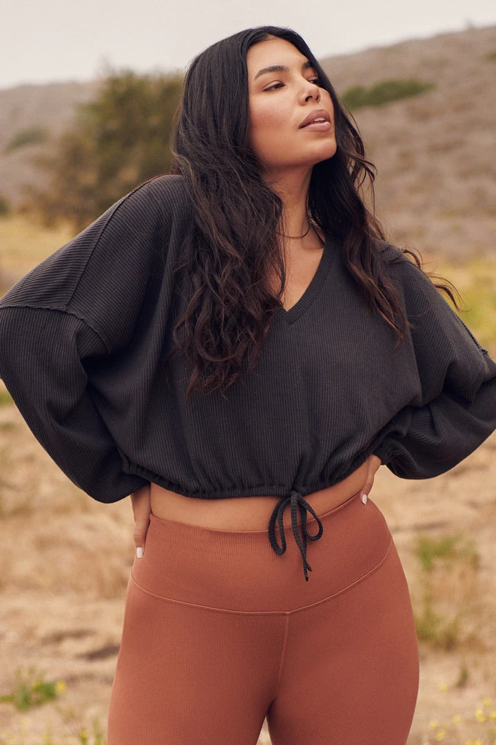 Keep your practice on pointe in the new Ballet Rib Long Sleeve Drawstring V-neck Top. Designed to be worn on its own or layered over a sports bra or bodysuit, it’s an easy throw-on-and-go style you can wear everywhere.