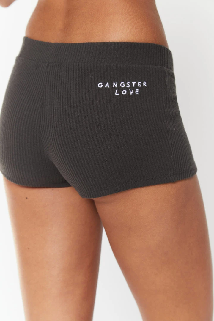 Your favorite ballet shorts are back and better than ever. Made from the coziest ribbed fabric, our Ballet Short features a flattering low rise fit with hidden elastic waistline, and a super soft ribbed construction that is perfect for cozy days at home. “Gangster Love” embroidery at right back hip.