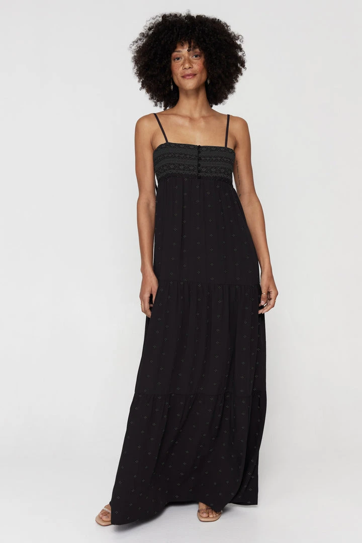 Our Embroidered Maxi Dress is perfect for transitioning seasons. In a lightweight recycled woven with ditsy floral embroidery and lace appliqué details, it’s easy to pack for far-away destinations, and effortless to wear for long-weekend staycations.