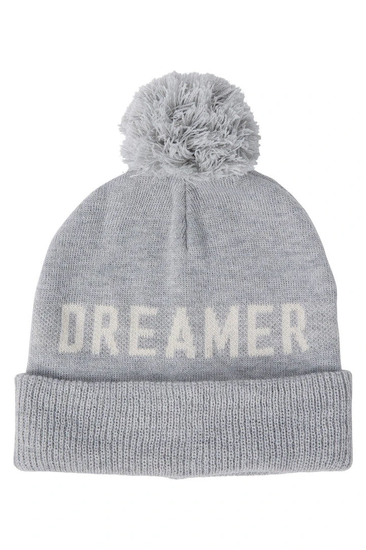 Our best selling beanie has been updated for the dreamer in all of us and softer than ever. This beanie has “dreamer” knit into the front and topped with a pom pom for that little something extra, making it the perfect go to cozy accessory.