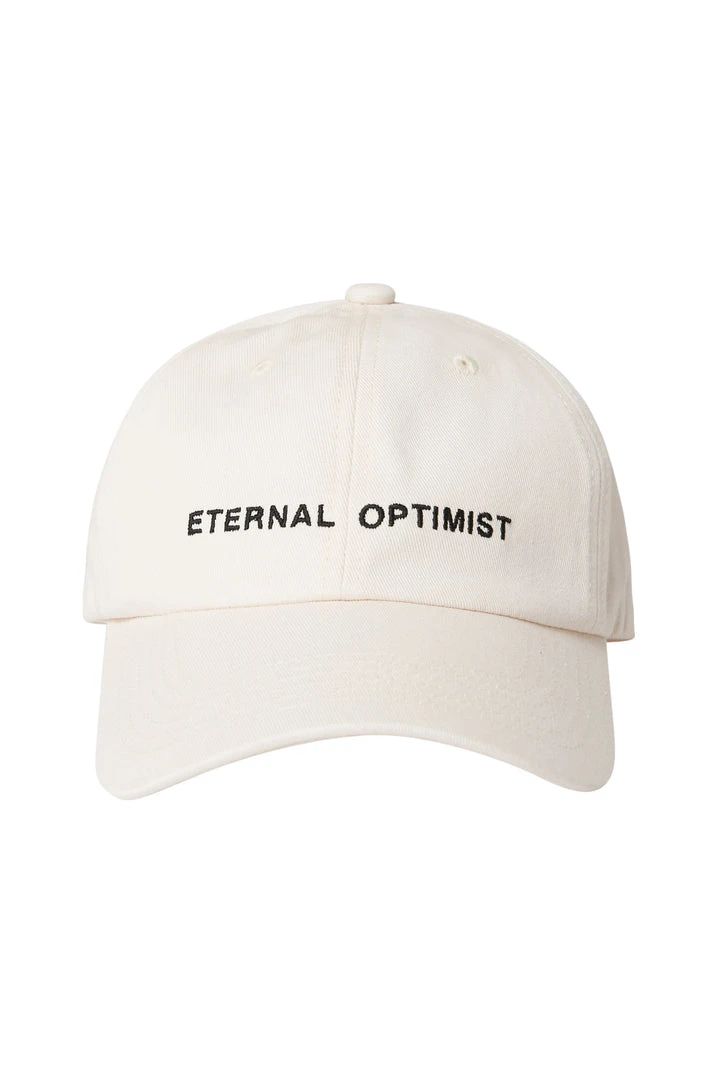 Choose happiness in our Eternal Optimist Baseball Cap. A true classic, featured in a vintage fit with a “Eternal Optimist” slogan. Pair with your favorite off duty looks.