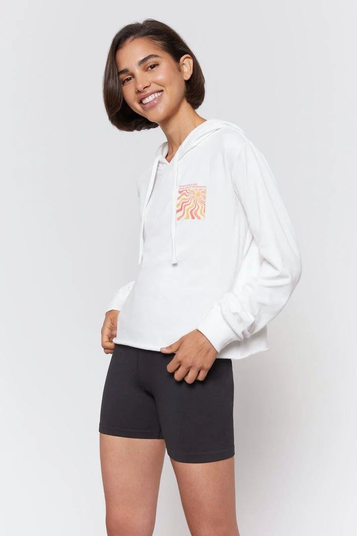 The cream of the crop, our Crop Hoodie in soft tri-blend terry is garment-dyed for a next-level comfy, lived-in feel. Slightly cropped for styling but long enough to provide comfortable coverage.