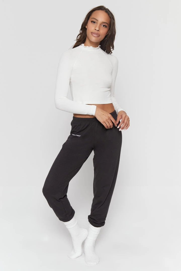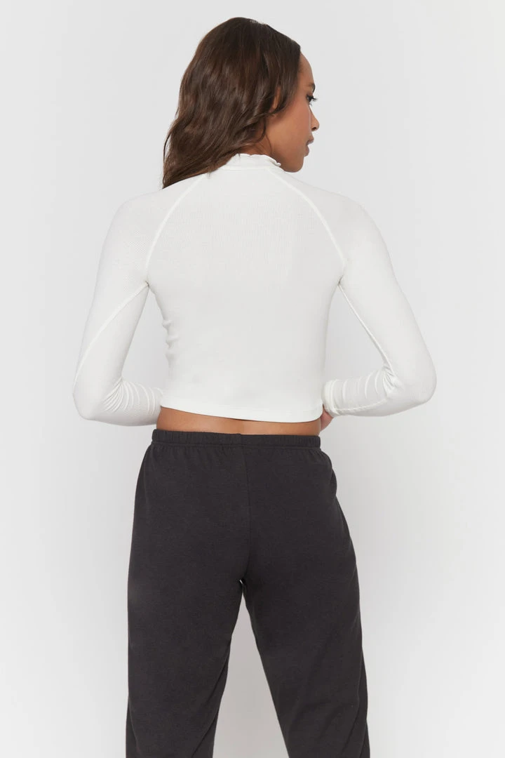 Designed to add some femme to your flow, we are obsessed with the new Funnel Neck Raglan Long Sleeve tee, and its modern ruffle mock neck detail. In our sleek, breathable modal rib fabric that blends softness, stretch, and texture throughout, this tee is fitted against the body, features premium merrow stitch details, and a subtle cropped length that flatteringly hits at the smallest part of the waist.