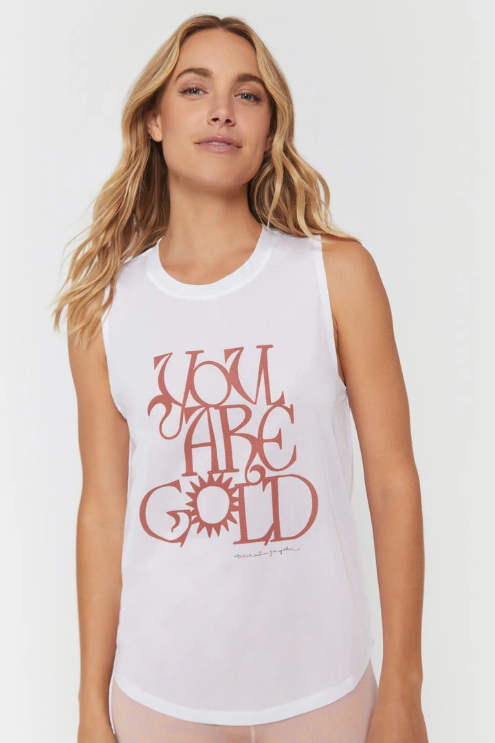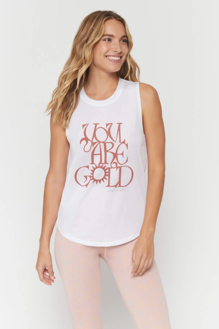 Move with intention in the Active Muscle Tank, updated with a new graphic and metallic touches, adding a little shine to your practice.