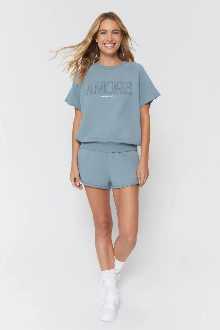 With a nod to throwback gym-class vibes, our new Cut-Off Short Sleeve Sweatshirt is inspired by our best-selling Bridget sweatshirt, updated with a shorter sleeve for warmer months. Throw it on with the Lounge Cotton Short and let your arms soak up some vitamin D, while your core stays warm and activated post-workout.