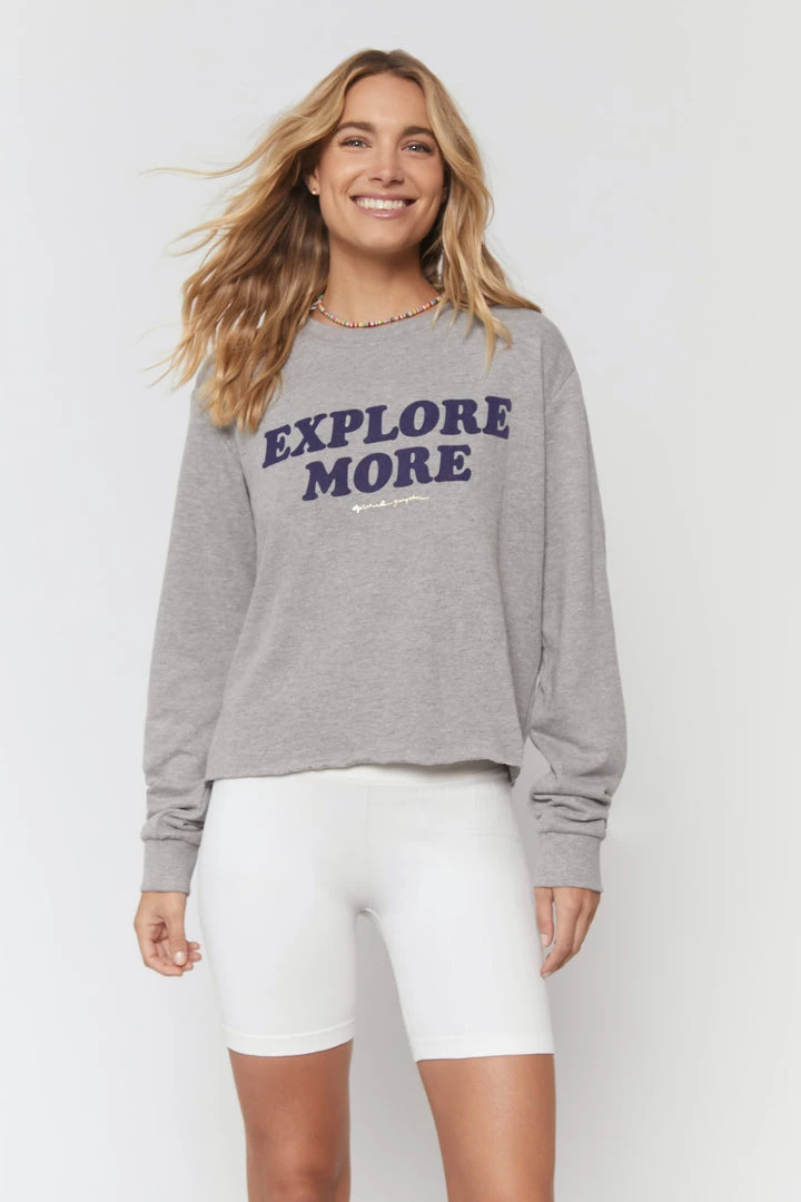 Embrace adventure in our Crop Sweatshirt in soft tri-blend terry. Perfect for a quick warm-up session, it’s slightly cropped yet long enough to provide coverage as you move through your flow.
