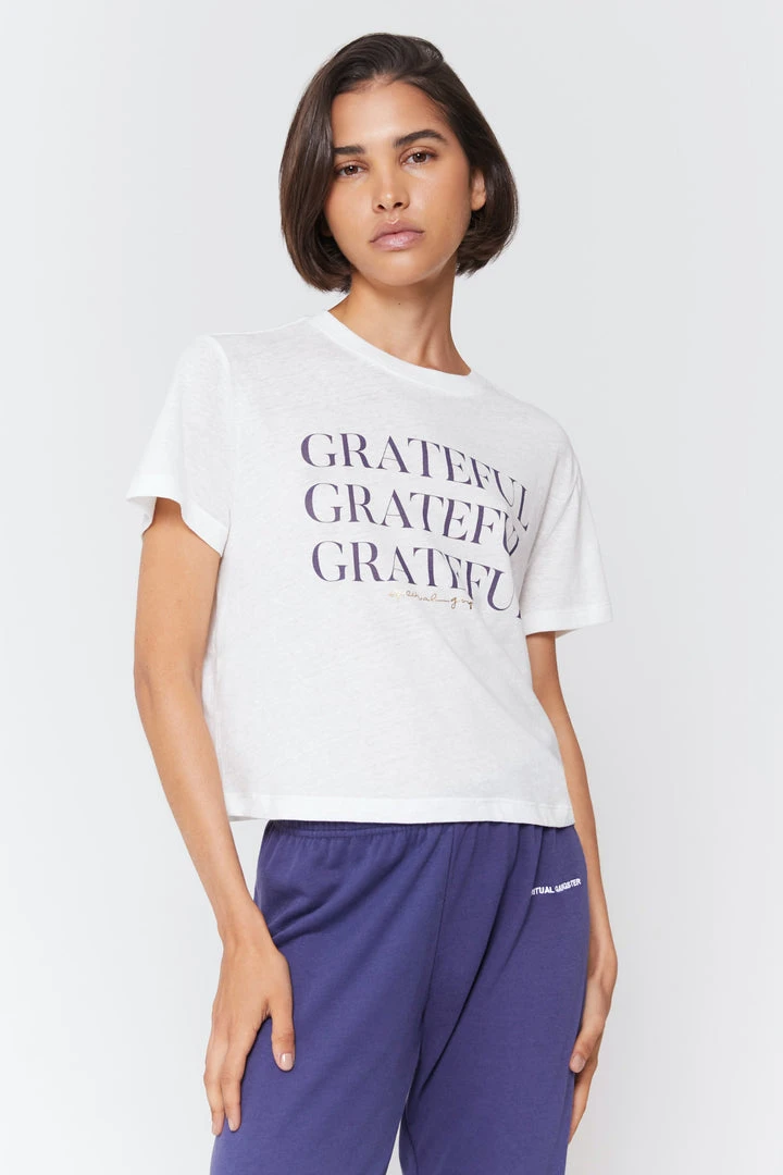 Share your attitude of gratitude in the new Crop Tee (aka our new favorite tee of the season), designed in a soft tri-blend jersey. Inspired by our best-selling Crop Tank and Perfect Tee styles, it delivers the best of both worlds with a subtle cropped length that hits right at the top of the your waistband, making it versatile enough to be styled out or tucked in.