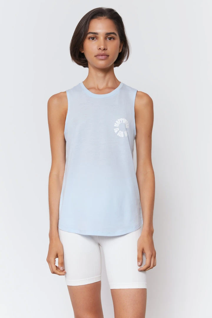 Let happiness guide you in our tried-and-true Muscle Tank in soft, breathable cotton modal. Perfect for running trails to running errands, it’s no wonder that this one has become a cult fave.