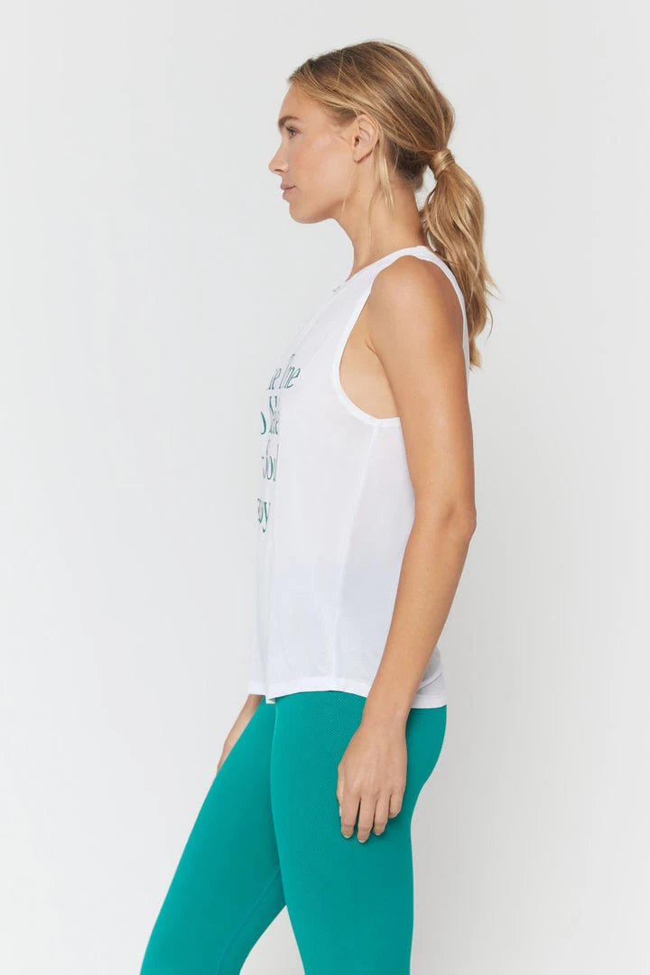 Move with intention in the Active Muscle Tank, updated with a new graphic and metallic touches, adding a little shine to your practice.