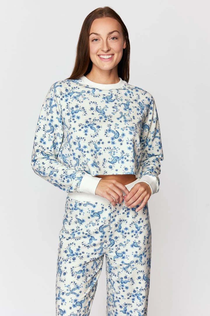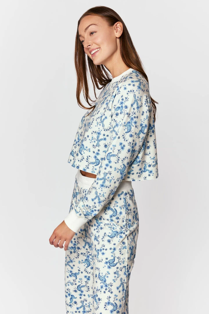 Keeping it short and sweet, we love our new cropped Lizzy Sweatshirt in a super soft French terry, with a modern-femme floral paisley print.
