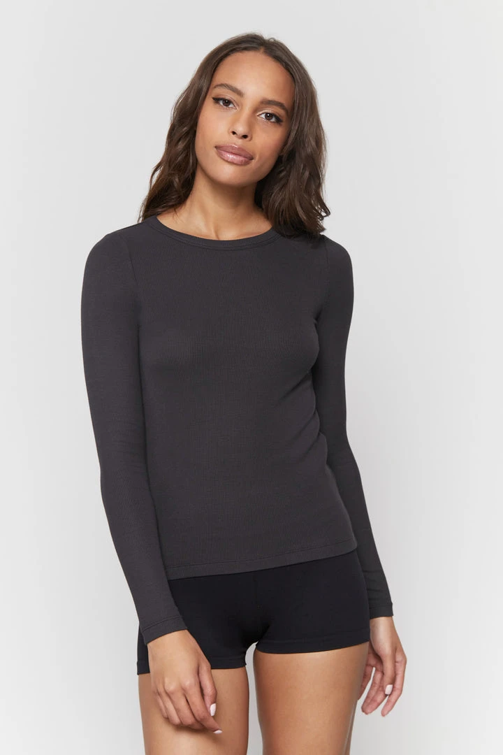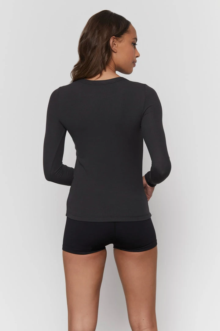 Raise your vibrations even during downtime in the Lounge Rib Long Sleeve tee, designed in our soft, breathable modal fabric with a subtle raised rib texture and a hint of stretch for body-skimming shape retention. With slim sleeves that stay put, a clean crew neck with elevated binding, and set-in shoulder seams for a sleek fit, this versatile staple can be worn on its own, or layered underneath as a cozy base.