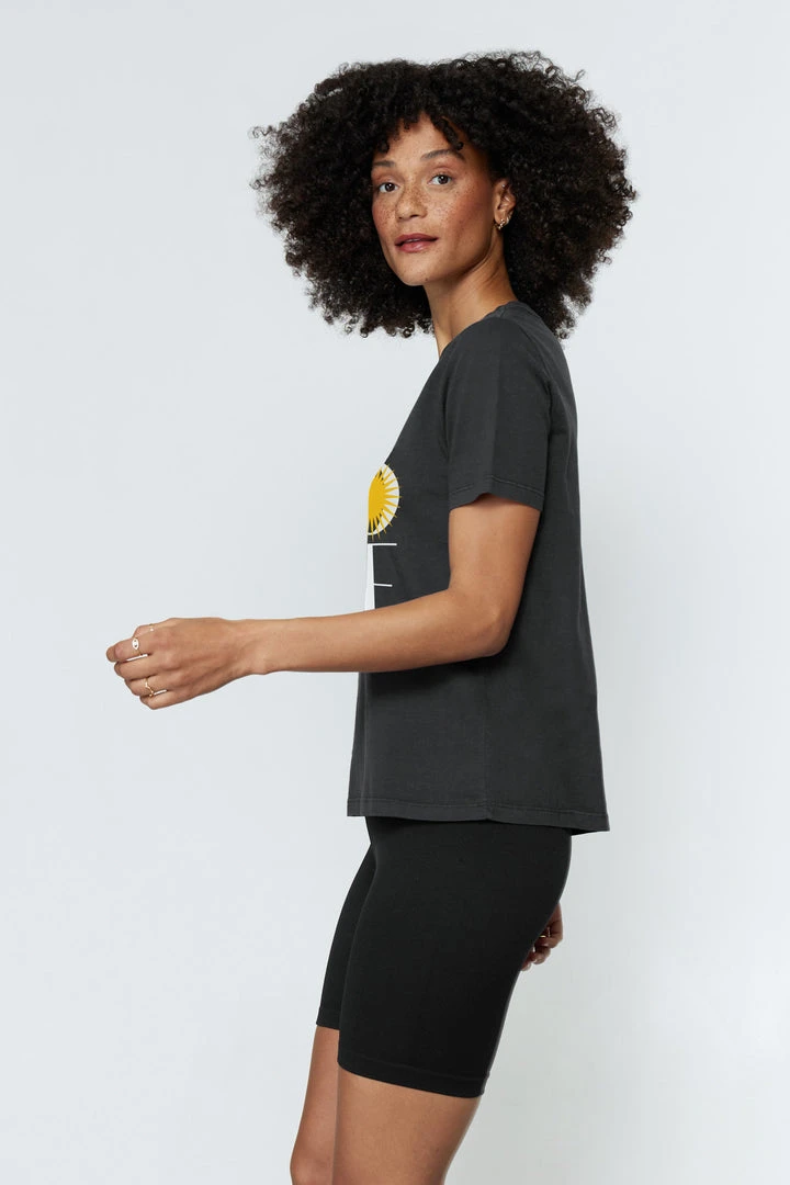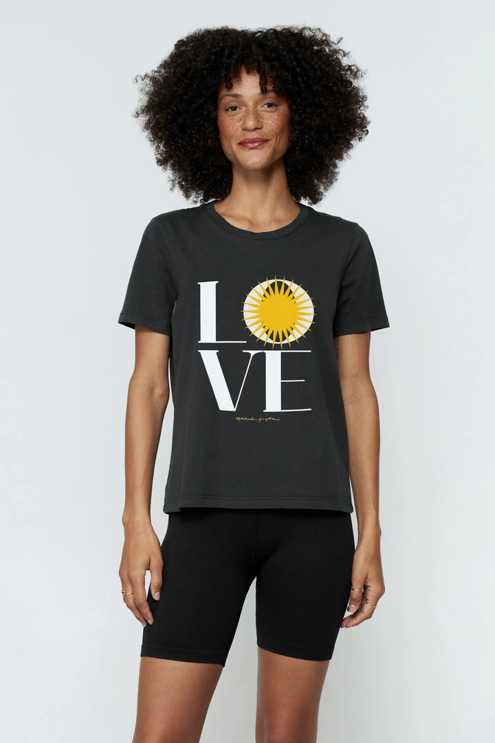 From gym to street, meet the vintage-inspired tee of your dreams. Made from a super soft cotton jersey blend, our Perfect Tee has a slim yet relaxed fit featuring a crew neck, sun-inspired “Love” front graphic, and short sleeves. We love it paired with your favorite sweatpants or high-waisted leggings.