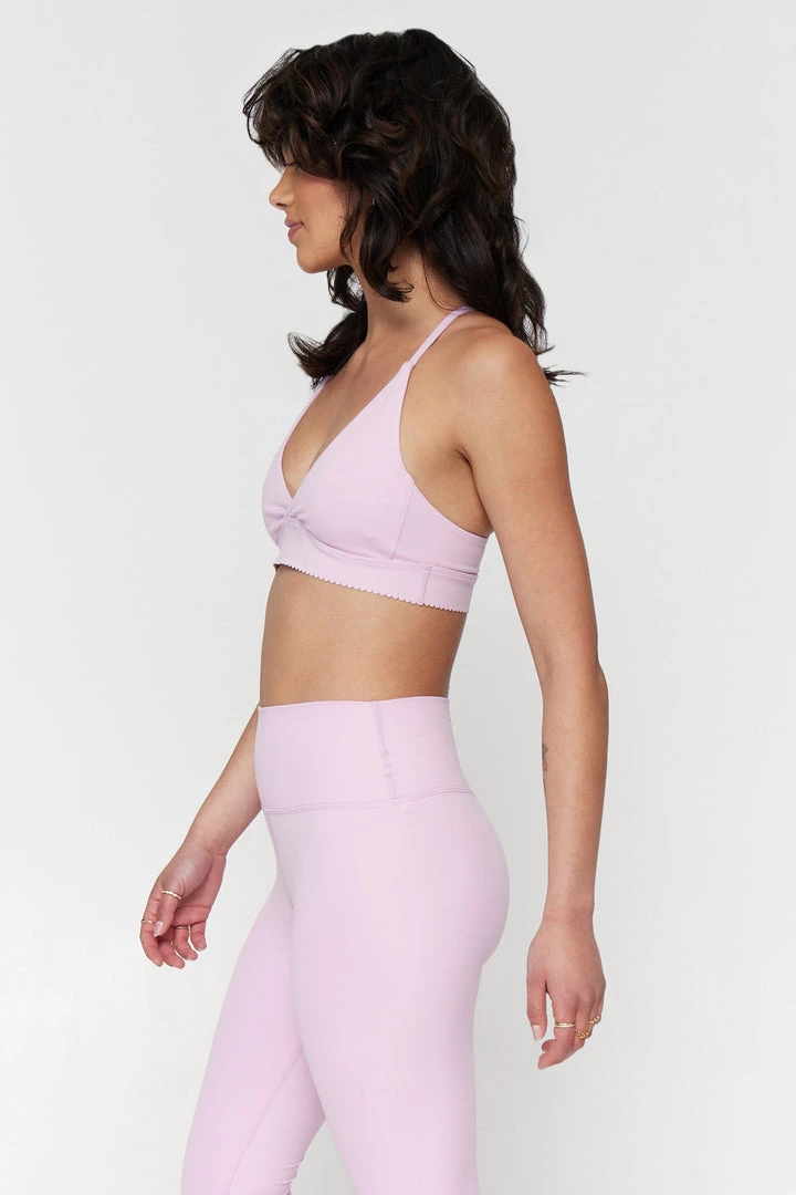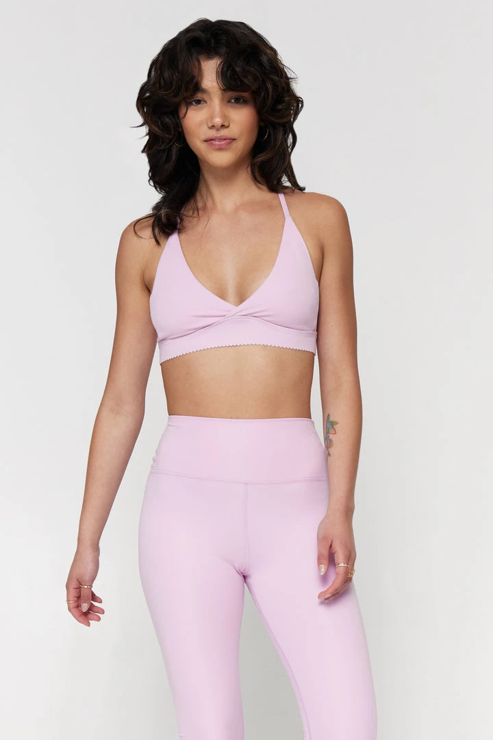 Flex and flow with feel-good vibes in our new Lynna T-Back Bra, designed with eco-conscious recycled fibers. Featuring a femme scalloped edge, and an overlap detail at the bust for ultimate flexibility and fit as you move through your practice.