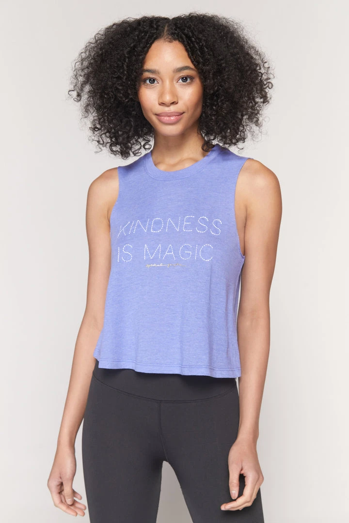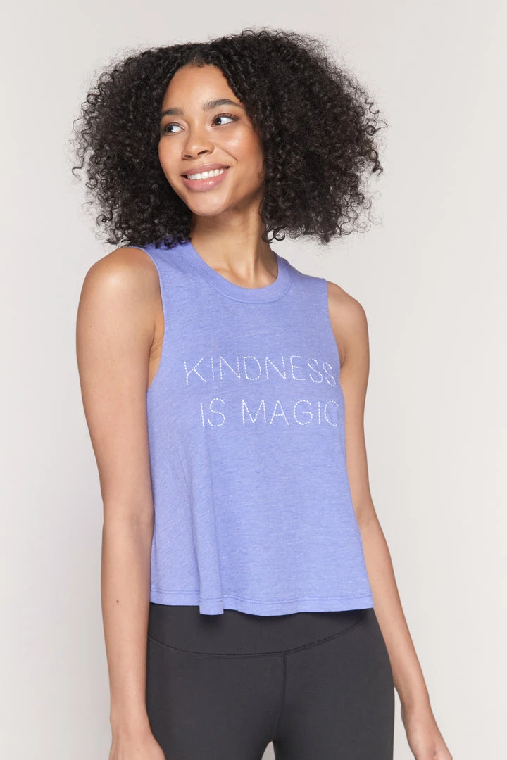 Kindness is magic in our Classic Crop Tank. Designed with a vintage cropped silhouette, our Crop Tank features a crew neck, raw, slightly dropped armholes, and made from our ultra-soft cotton tri-blend jersey fabric. We added a special embroidered love note reading “Kindness is Magic” for a daily reminder of one of our favorite mantras. Perfect for finding your flow on and off your mat, pair the Crop Tank with biker shorts or our Love Sculpt high-waisted leggings.