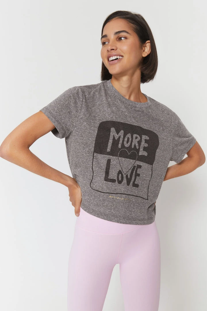Spread love and positivity in the new Crop Tee (aka our new favorite tee of the season), designed in a soft tri-blend jersey. Inspired by our best-selling Crop Tank and Perfect Tee styles, it delivers the best of both worlds with a subtle cropped length that hits right at the top of the your waistband, making it versatile enough to be styled out or tucked in.