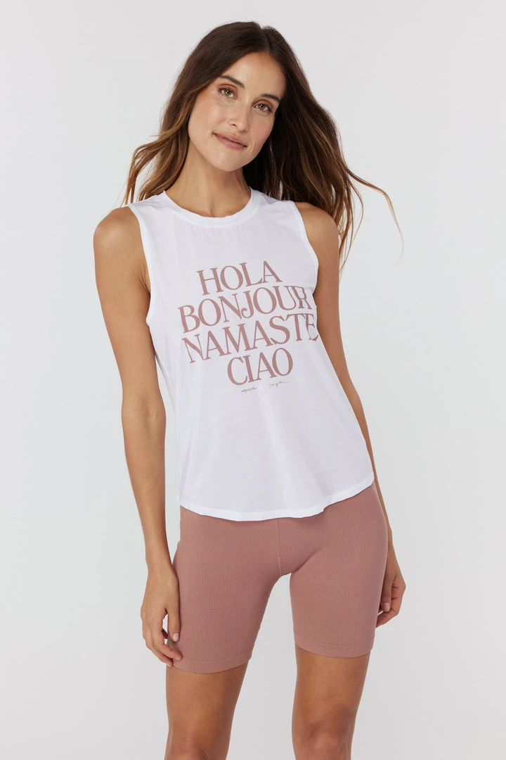 Move with intention in the Active Muscle Tank, updated with a new graphic and metallic touches, adding a little shine to your practice.