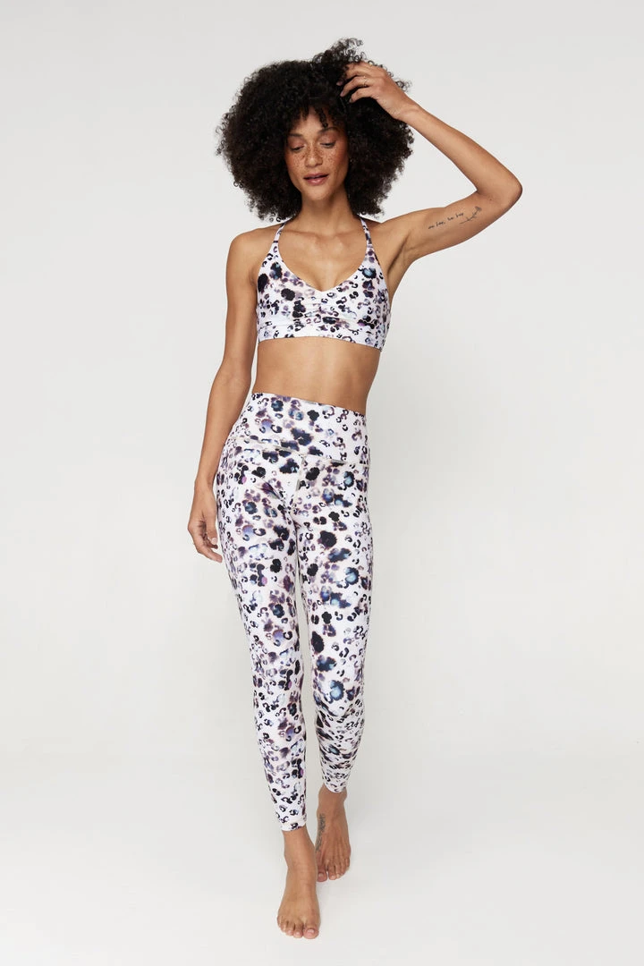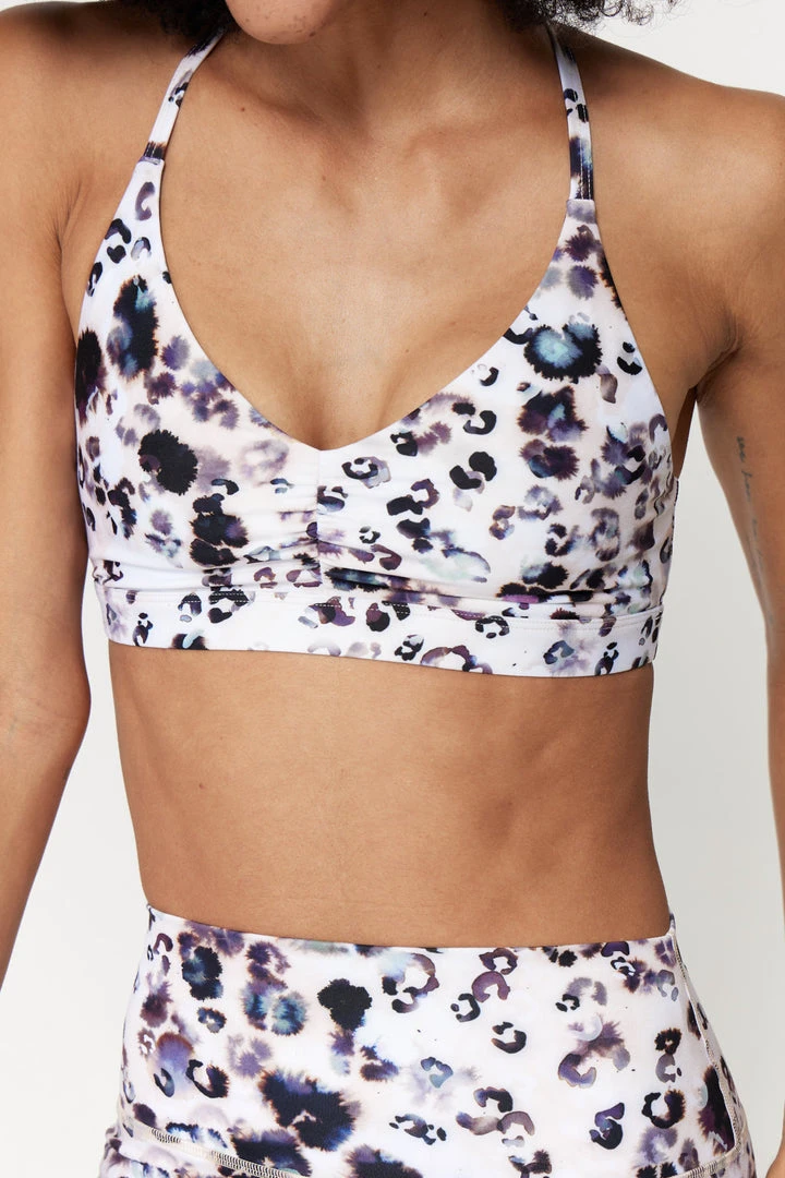 Soft and supportive the Studio T-Back Bra features a fierce new leopard print, applied using a waterless printing technique. Made with eco-conscious fibers you’ll feel good knowing that what supports you, also supports a movement.
