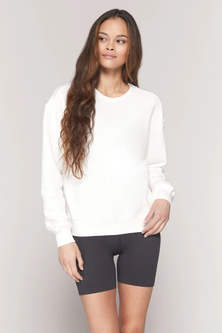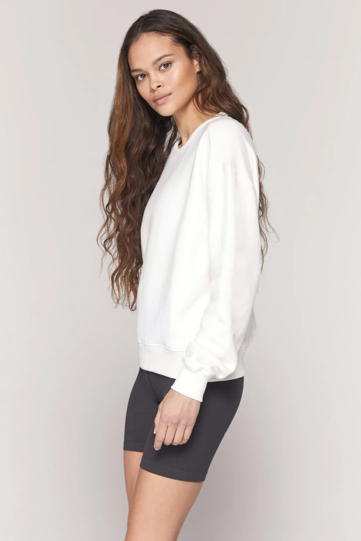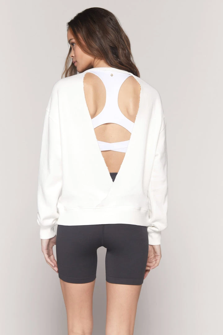 The perfect pre- or post-workout addition, our boho-meets-preppy Open Back Sweatshirt features a crew neck, rib neckband, hem, and cuffs, and a elevated open back. Made from our super soft 100% Cotton Bahia Terry, we love pairing our newest pullover with biker shorts or our high waisted leggings.