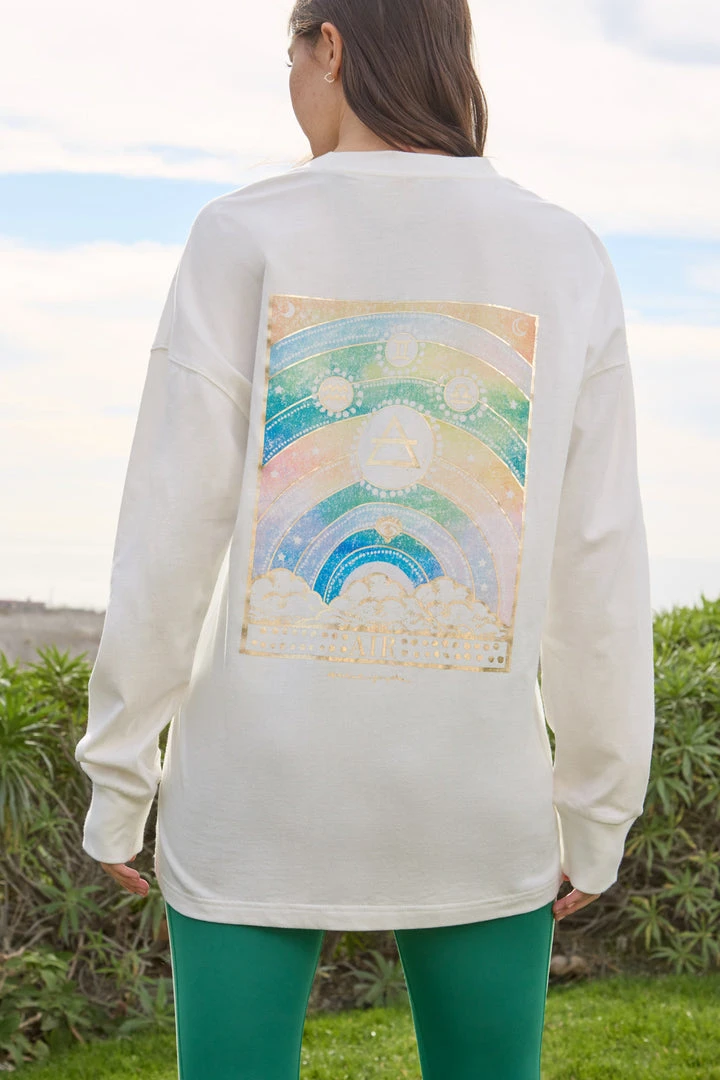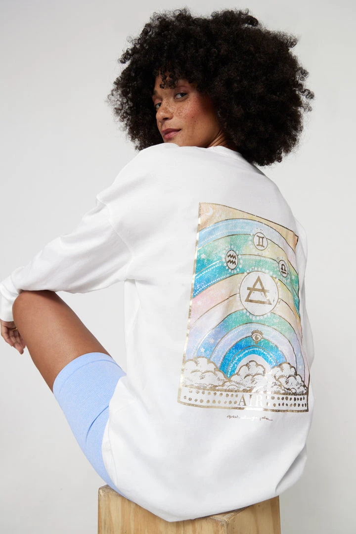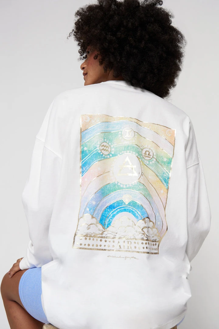 Aquarius, Gemini and Libra signs – connect with your air element in our new Sky Element Long Sleeve Tee, representing intention, intellect and universal connection. Designed in organic cotton and featuring a custom-designed intricate watercolor graphic with glimmers of gold. Part of our limited-edition In Your Element capsule.
