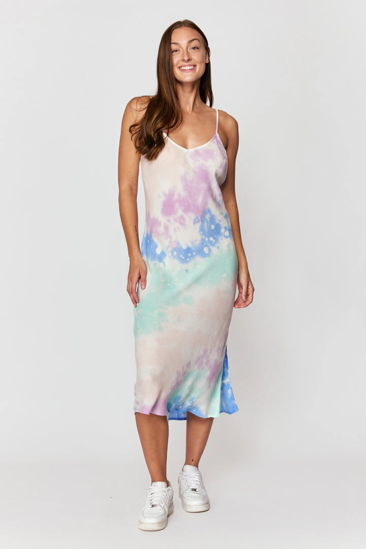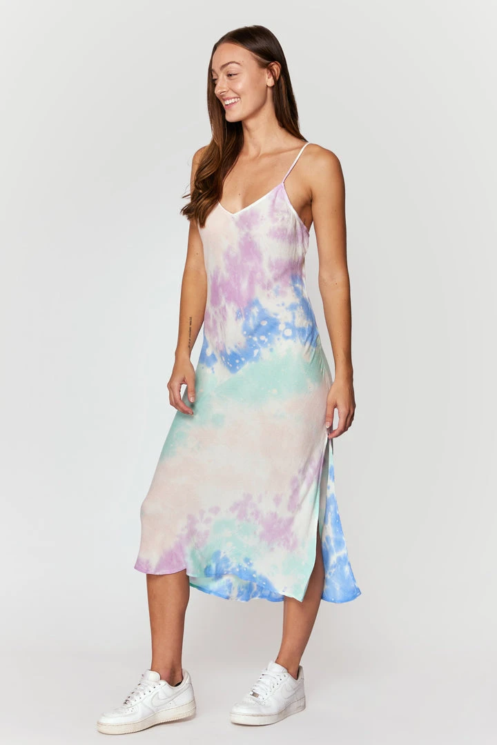 Our popular Slip Dress is updated this season with a pretty pastel tie-dye treatment. In smooth woven fabric, its 90’s sporty-femme vibe is giving us all the nostalgic feels.