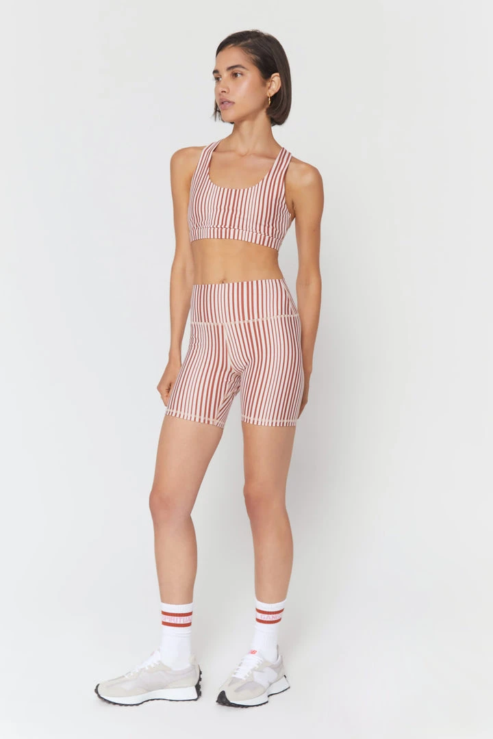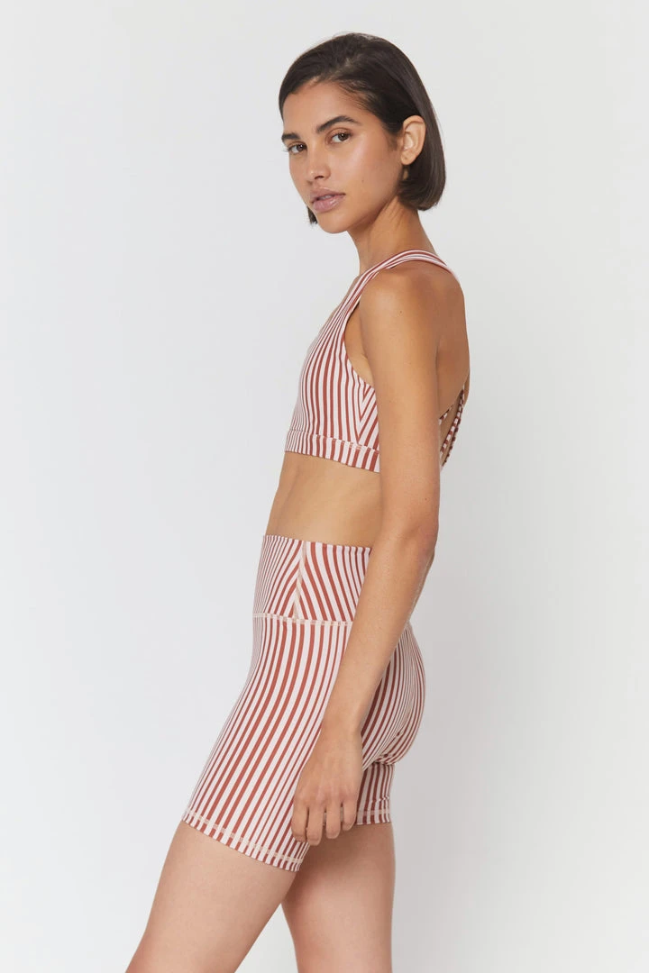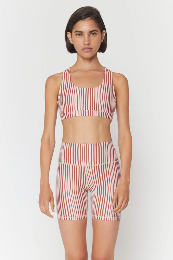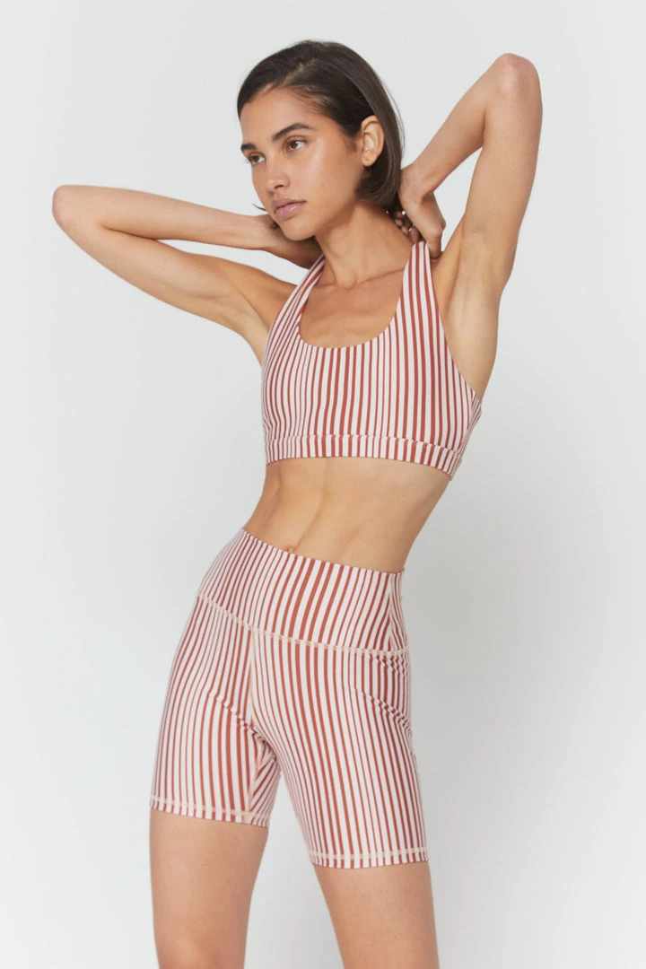 Make a statement in the Studio Sports Bra – the same silhouette you know and love, now in our mid-weight performance fabric featuring a sueded feel and a playful variegated stripe print.