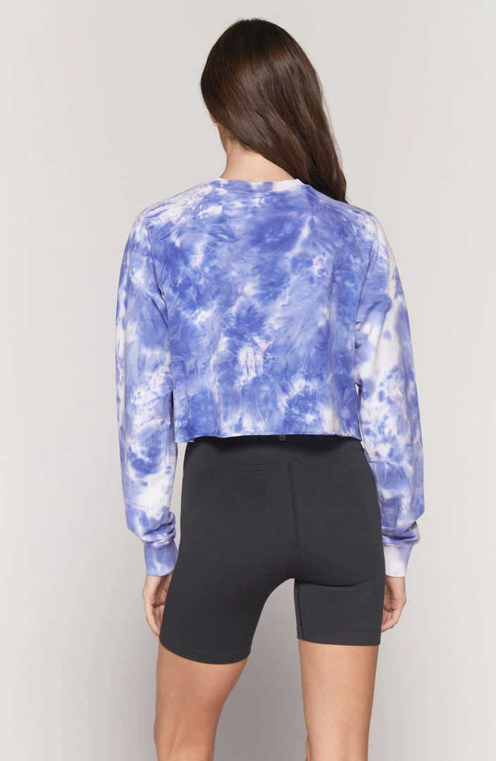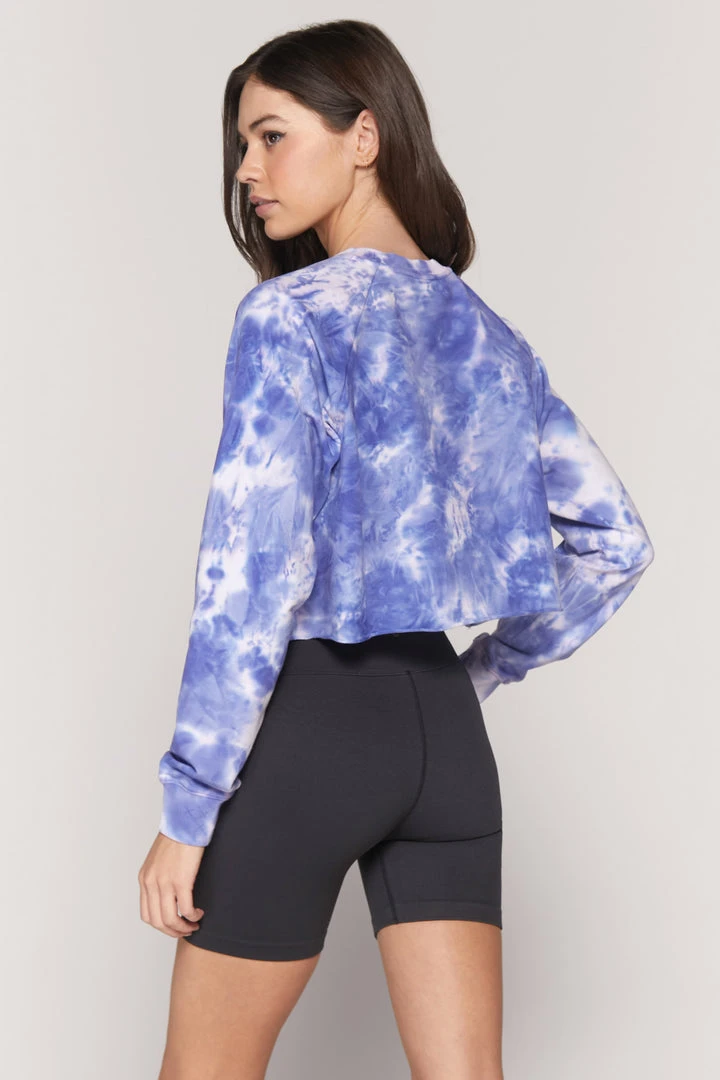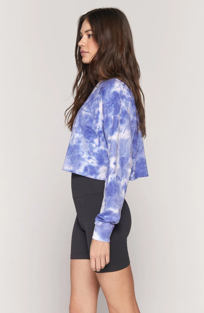 Join the love club in our short and sweet Izzy Crop. Made from a super soft stretch micro terry, our cute and comfy vintage inspired Izzy Crop features long sleeves with a raglan crew neck, a raw edge hem, rib neckband and cuffs, a Spiritual Gangster front logo, and all over hand-dyed Wildflower tie-dye.