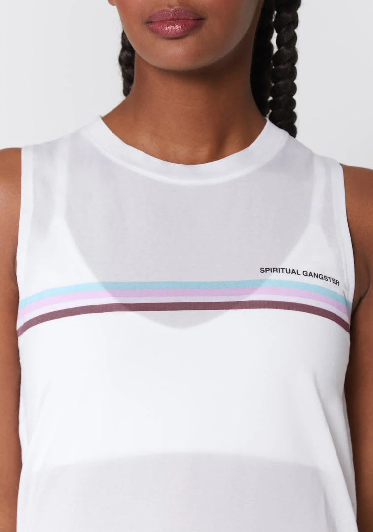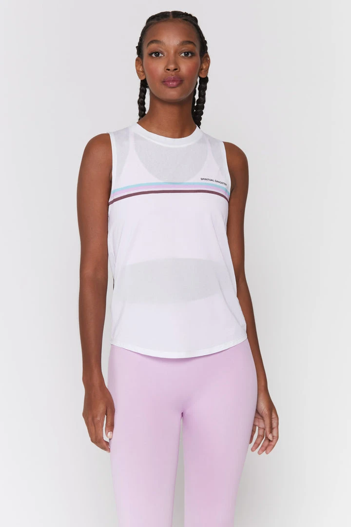 Move with intention in the Active Muscle Tank, refreshed with a throwback-inspired striped graphic, adding a vintage athletic vibe to your practice.