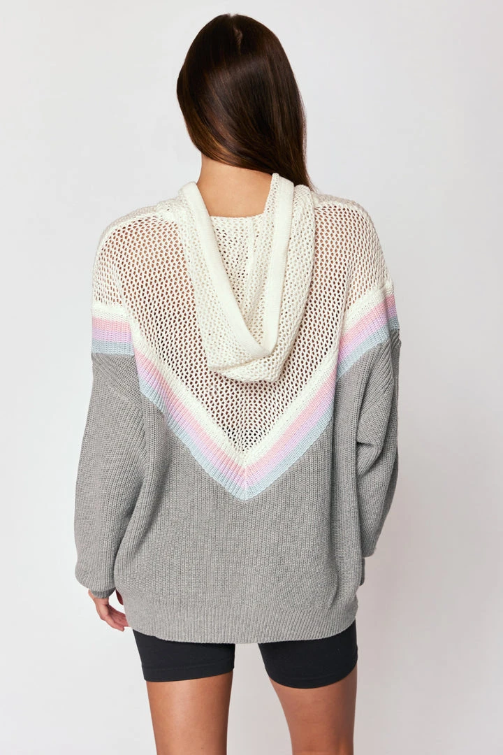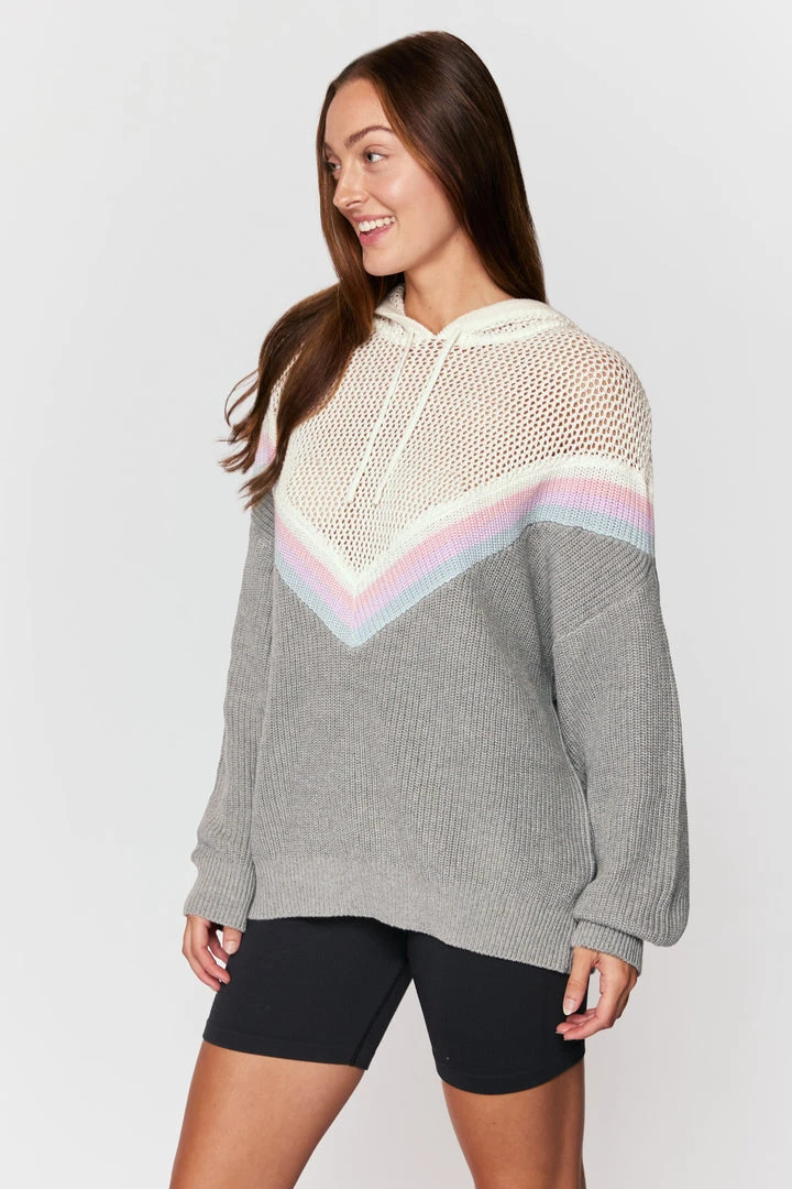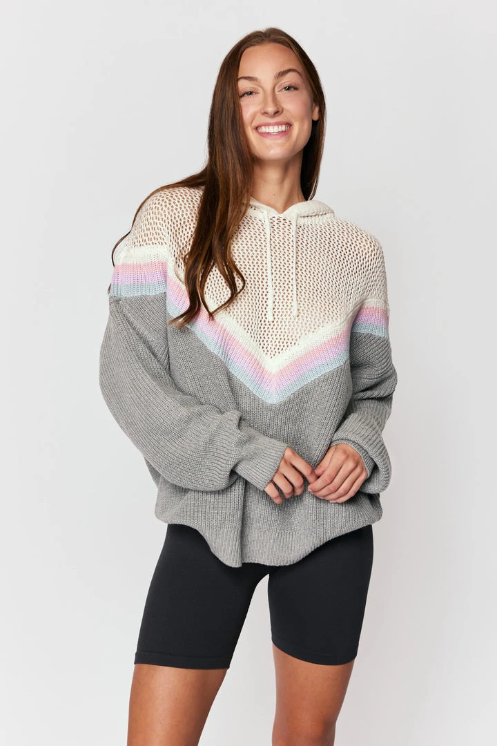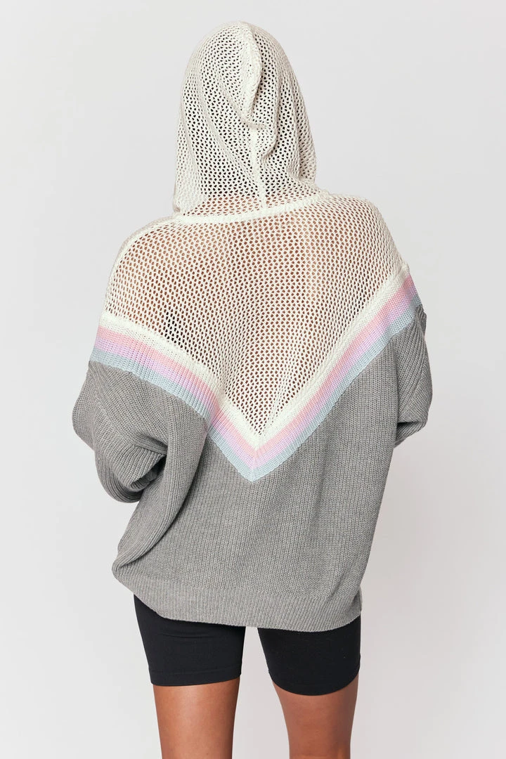 Where cozy and cool mesh together, meet our new Amar Meshed Up Hoodie, featuring color blocking and pastel rainbow stripe details. Mixing mesh and rib stitches on front and back, in a soft cotton blend sweater knit it’ll be your new favorite layer for the season.