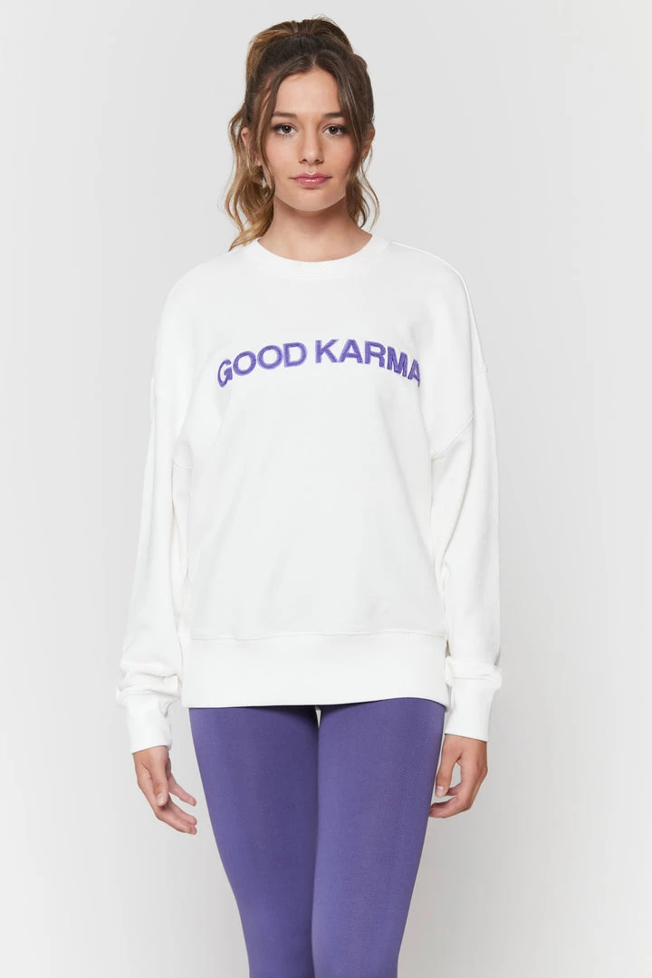 Attract good karma in the Relaxed Crewneck Pullover sweatshirt. Designed in soft, cotton French terry, with textural embroidery details, it’s the easiest throw-on-and-go piece that’s erfect for studio to street, or however you manifest positive vibes.
