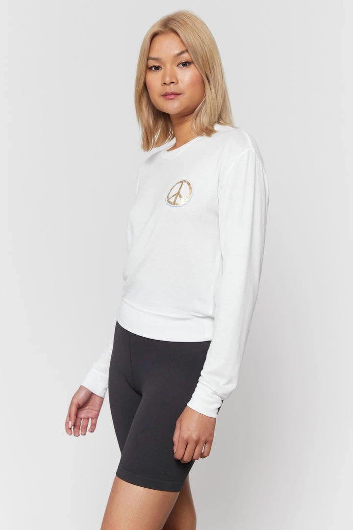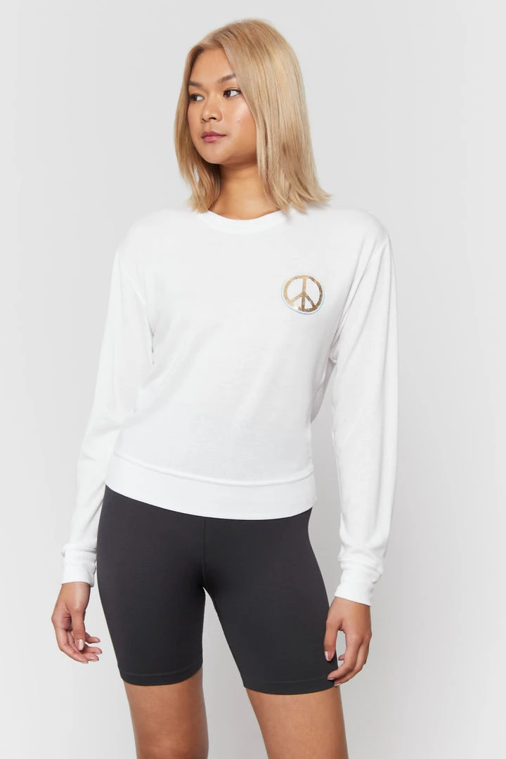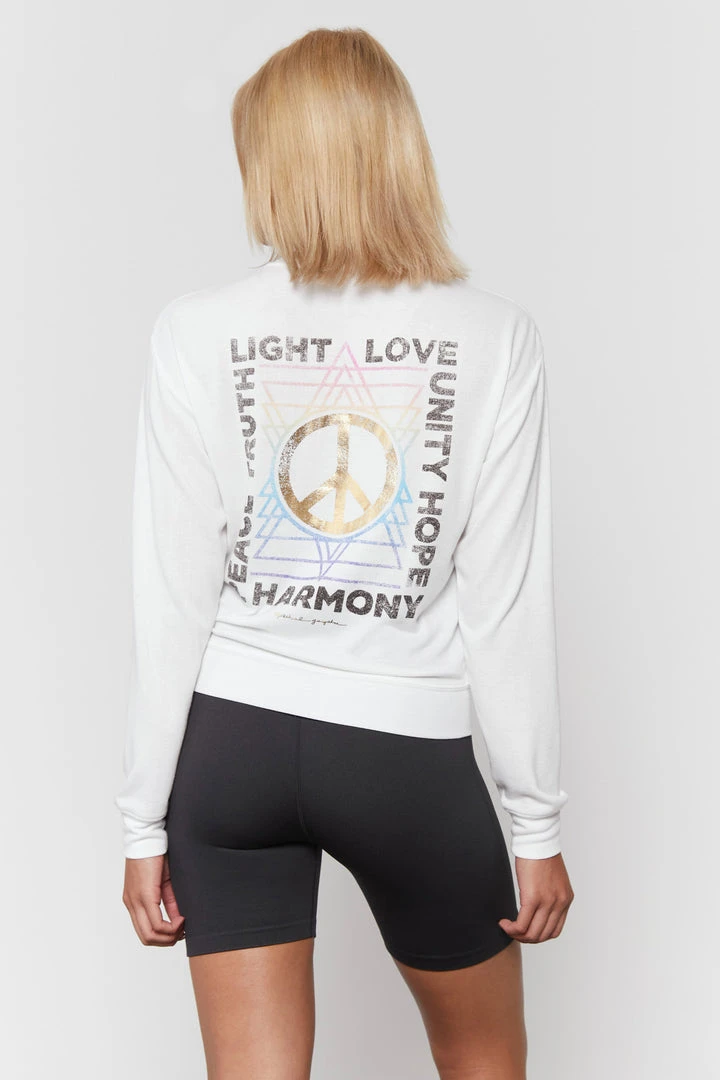 Pursue peace and harmony through movement in our popular Savasana pullover, updated this season with an aspirational new graphic. Perfect on its own or layered to complement your post-flow glow.