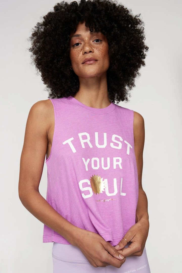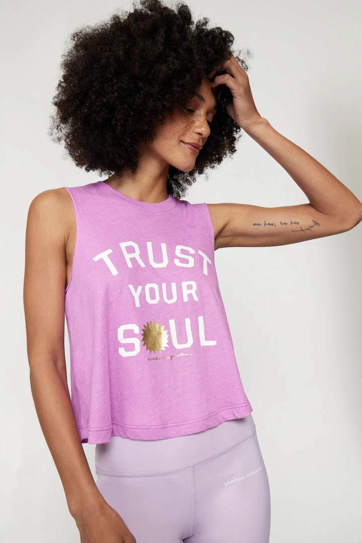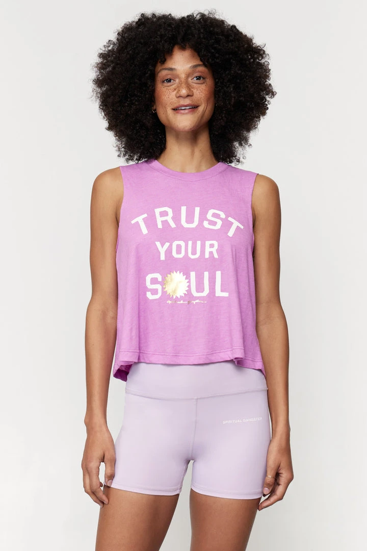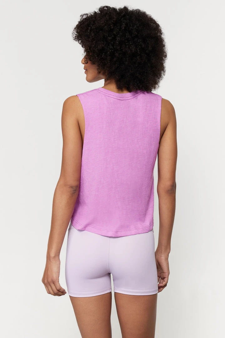 Trust your soul in our best-selling Crop Tank. In soft cotton blend jersey, it’s subtly cropped for easy styling but long enough to provide coverage as you move through your flow.