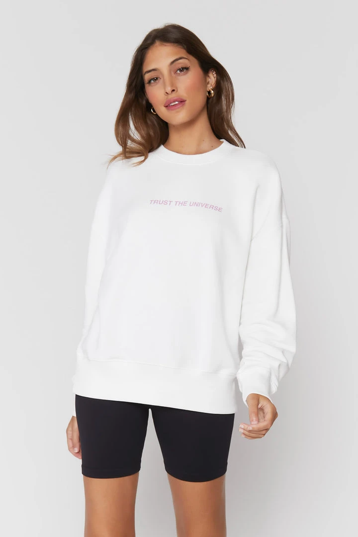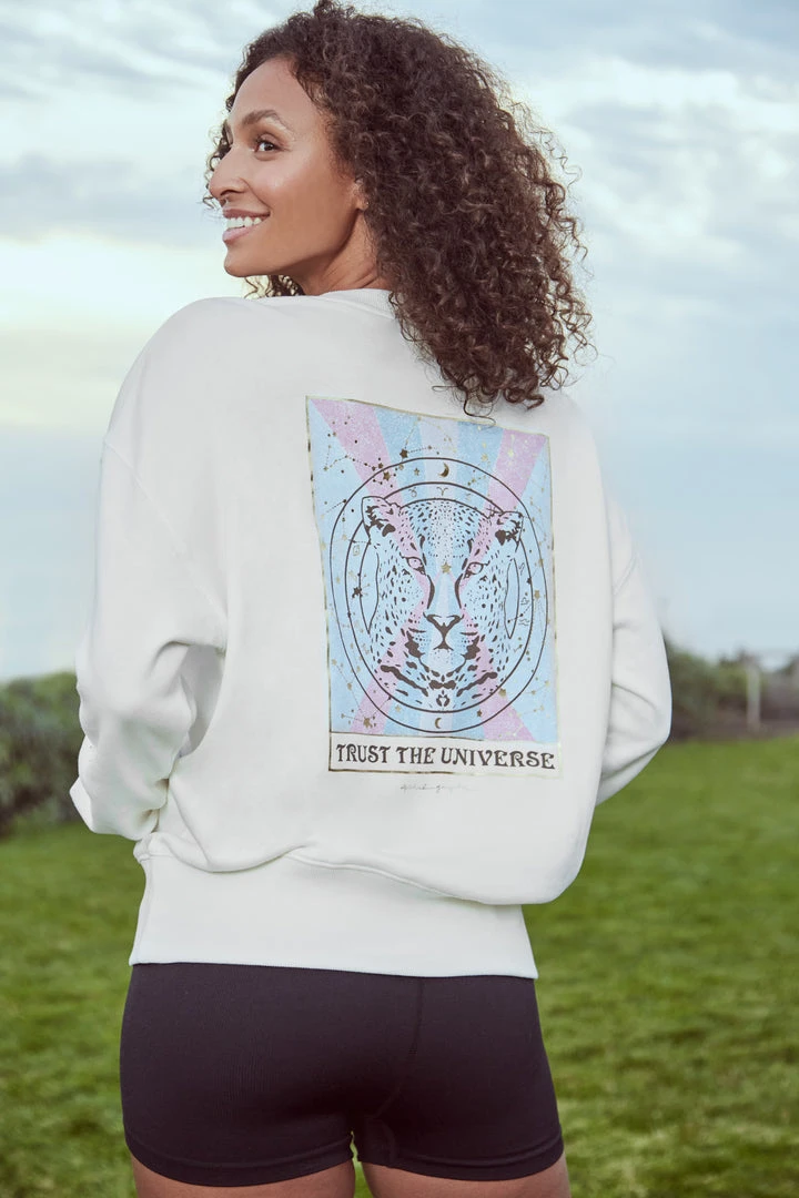 The universe has got your back in the Relaxed Crewneck Pullover sweatshirt. An easy throw-on-and-go piece that’s perfect for studio to street, or however you manifest positive vibes.