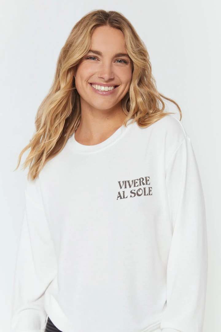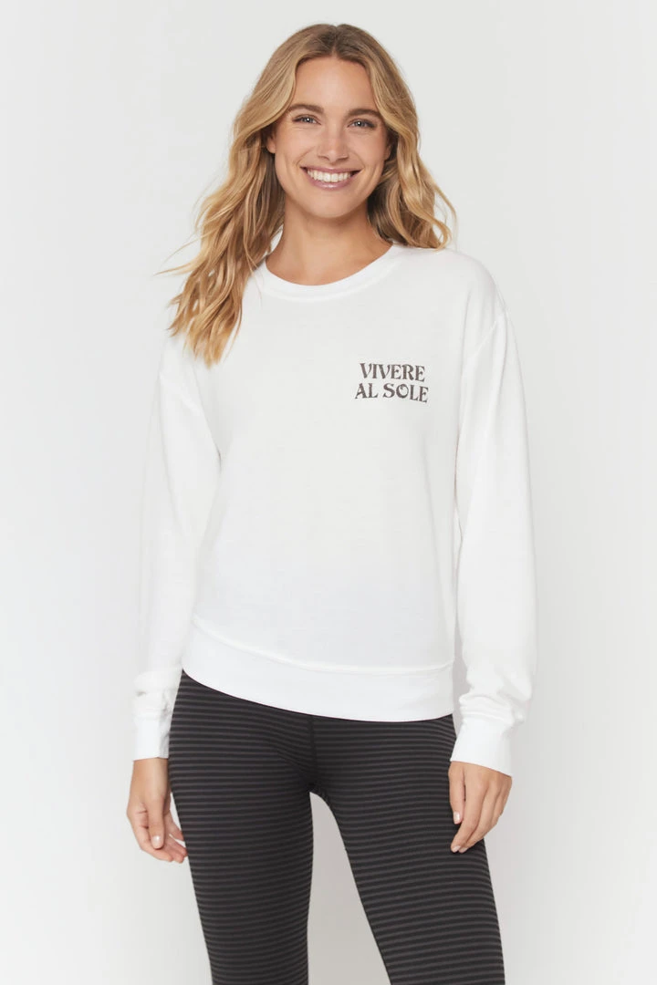 It was true love when we designed the top-selling Savasana pullover in our soft, lightweight Hacci knit fabric. With a new sun-loving inspired distressed graphic, it’s awesome on its own or layered up for coziness to complement your post-flow glow.