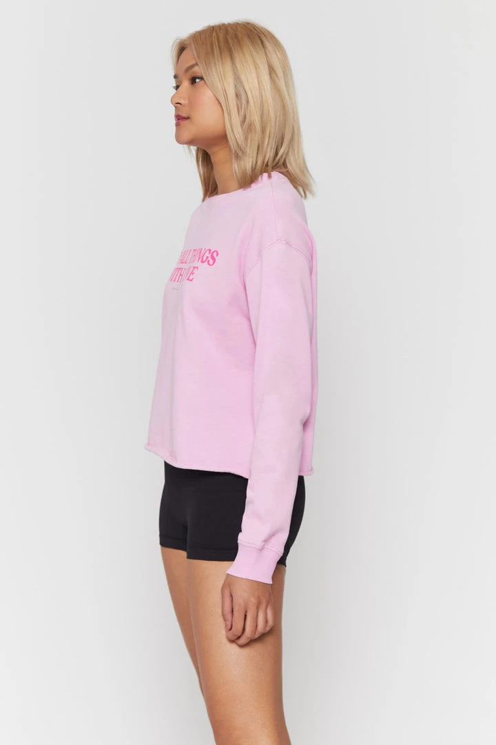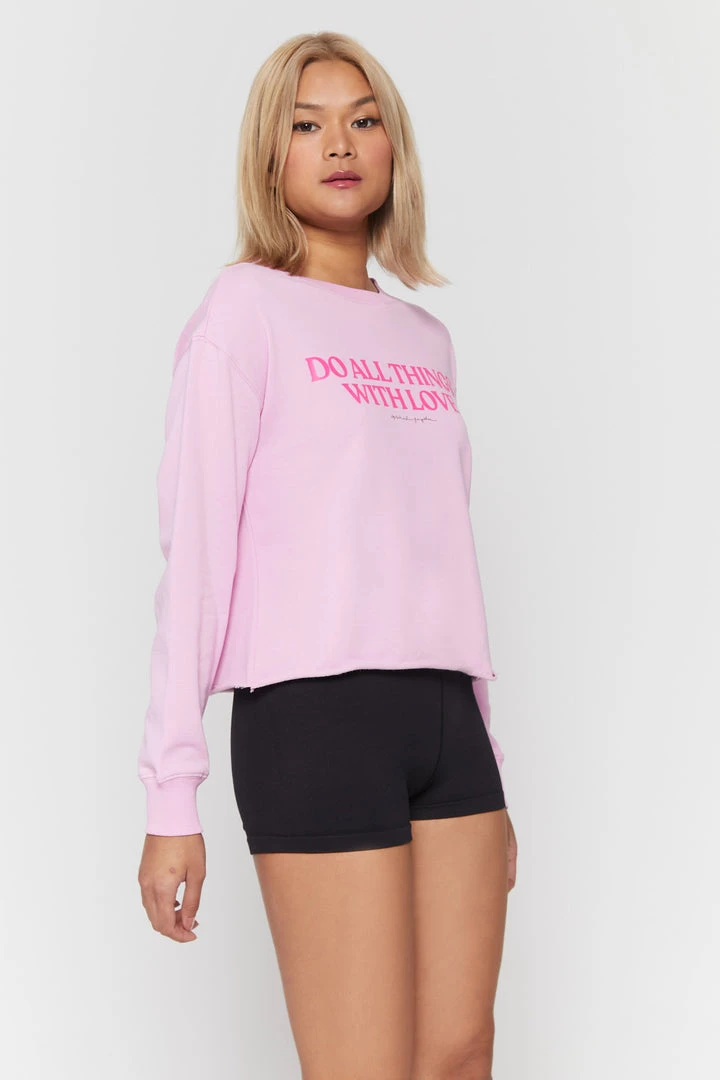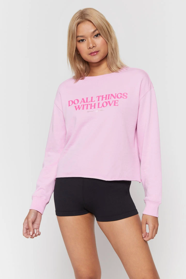 Our popular Mazzy sweatshirt gets a graphic update this season with a love-inspired graphic and a fun color combo. In pigment-dyed, soft cotton blend terry it delivers breathable coziness to your early morning flow and late-night meditation.